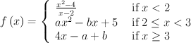 Find the values of a and b that make f continuous everywhere. (Enter your answers as fractions.)